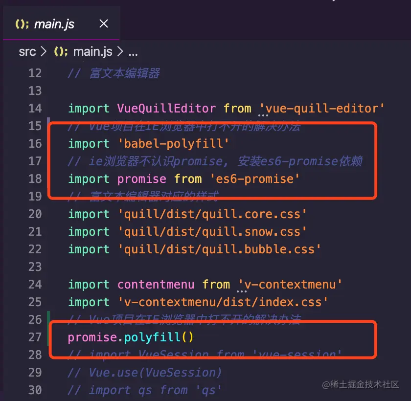 在main.js 文件中引用这个库,import 'babel-polyfill'