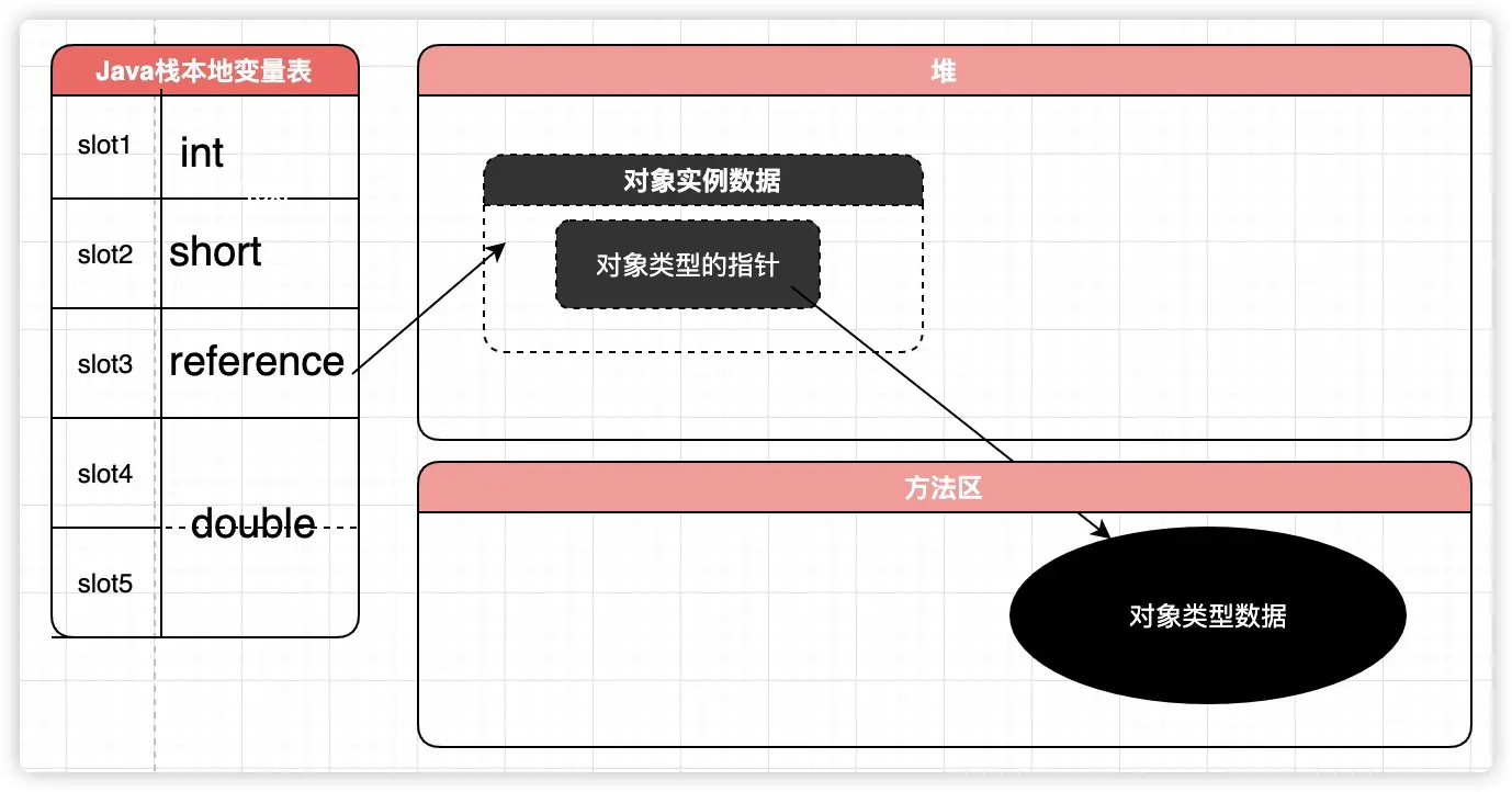 局部变量表放的是编译期就知道各种基本数据类型,什么boolean,byte,对象引用(对象起始地址或者是一个句柄,这块后面细聊)等等类型。