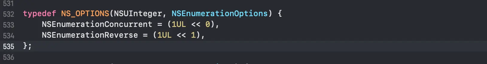 - (void)enumerateObjectsWithOptions:(NSEnumerationOptions)opts usingBlock:(void (NS_NOESCAPE ^)(ObjectType obj, NSUInteger idx, BOOL *stop))block;