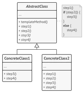 识别方式: 模版方法可以通过行为方法来识别, 该方法已有一个在基类中定义的 “默认” 行为。