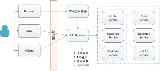 即对外以纯API形式提供服务,通过以APIGateway作为应用的入口,基于领域模型按子域进行微服务划分,从而实现Serverless化的大数据计算服务。