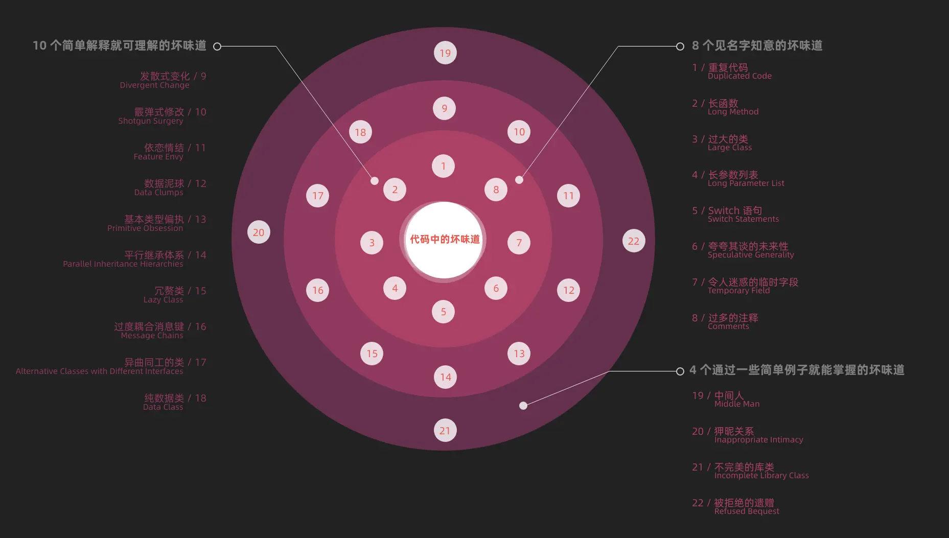 在上一篇文章中,介绍了通过名字就能理解的 8 个坏味道,感兴趣可以查看识别代码中的坏味道(一)。本篇文章将识别代码中的另外 10 个代码坏味道:10个晦涩但是通过简单的即可识别的坏味道。