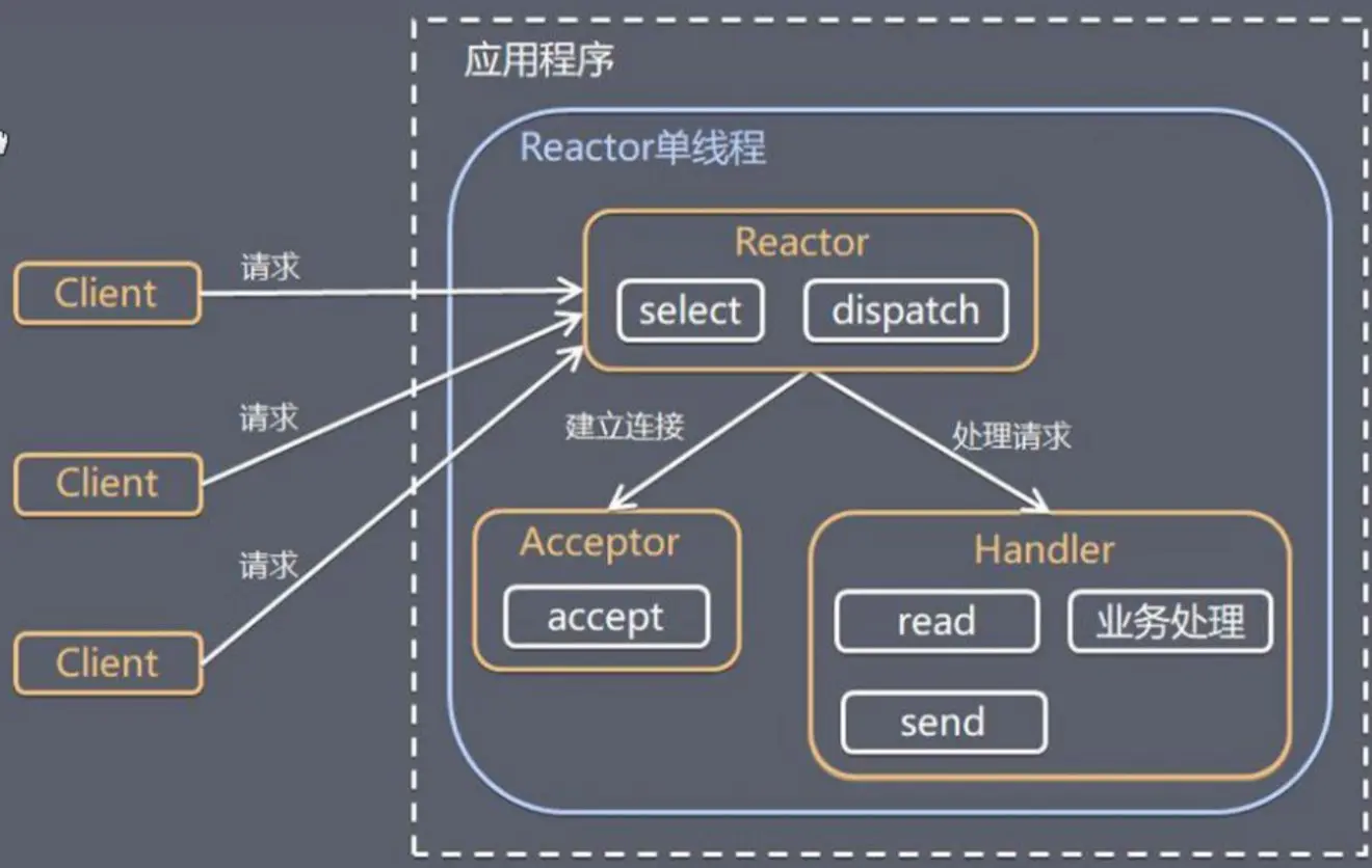 - 单Reactor单线程:多路复用、事件分发和消息的处理都是在一个Reactor线程上完成。 优点:模型简单,实现方便 缺点:性能差:单线程无法发挥多核性能, 可靠性差:线程意外终止或死循环,则整个模块不可用