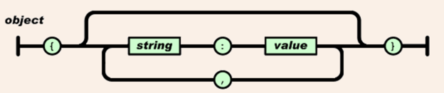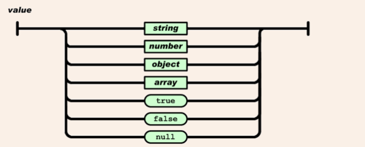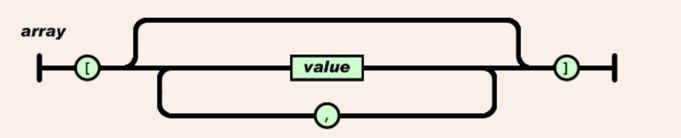 value 对应对象语法图里的 value 和数组语法图里 value,value 也可以是 object 或 array,所以下面的语法成立: