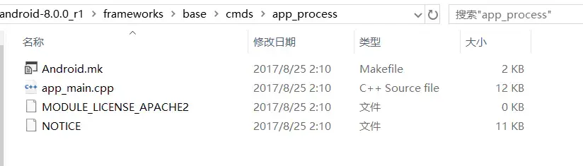 "app_process"程序源码路径在:android-8.0.0_r1\frameworks\base\cmds\app_process\app_main.cpp中。