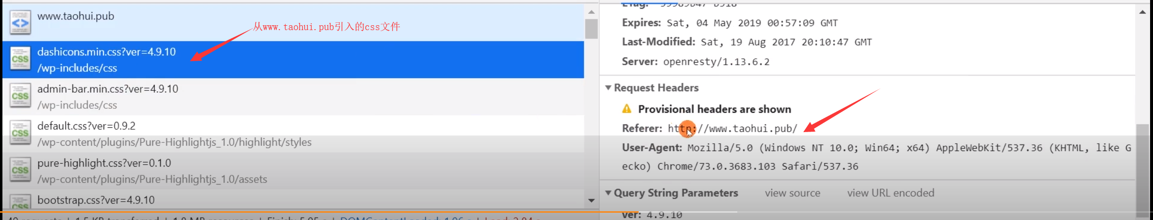 Web协议详解与抓包实战学习系列(五)上下文 Simplyme0823 2020-05-18 169 阅读1分钟 请求的上下文下方的css文件的Refer来自于www.taohui.pub 这是由于css浏览器渲染html,从html文件中读取css连接响应的上下文