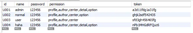 账号user拥有部分页面权限profile,author,center(对应页面为:基础详情页,权限列表,个人中心)