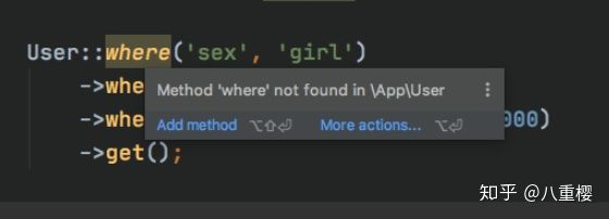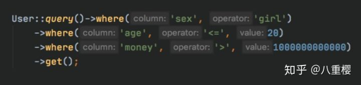 User::where('sex', 'girl')->where('age', '<=', 20)->where('money', '>', 1000000000000)->get();这种查询语句大家是不是经常写啊?有没有发现一个问题?本来找个富萝莉就挺难得,还没有提示。