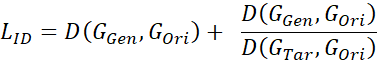 显然,终极的平衡不是调参就可以获得的。BIGO的算法同学在深挖了L_ID后发现:对于两个本来长得就有点像的人,换脸后的结果从视觉上几乎看不出变化,原因在于他们的ID特征距离本来就小,如果仅仅使用简单的l2损失或者cos相似度的话,网络对这部分的惩罚会很小,但是简单的加大L_ID的权值又会使整个网络的训练变得艰难。为了解决这个问题,我们提出了衡量换脸效果的相对ID距离。简单来说,就是对比源人脸在换脸前后与目标人脸的距离差异。用公式可以表达为: