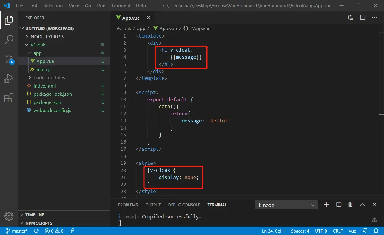 使用了v-cloak指令以后,更新时文本依然会闪烁但双花括号不再会显现。
