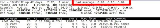 load average :系统运行队列的平均利用率,也可以认为是可运行进程平均数。三个值分别表示在最后的1分钟、5分钟、15分钟的平均负载值。