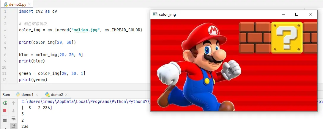 如果我们直接使用 Matplotlib 来显示 OpenCV 读入的图像,会得到下面这个蓝色的马里奥: