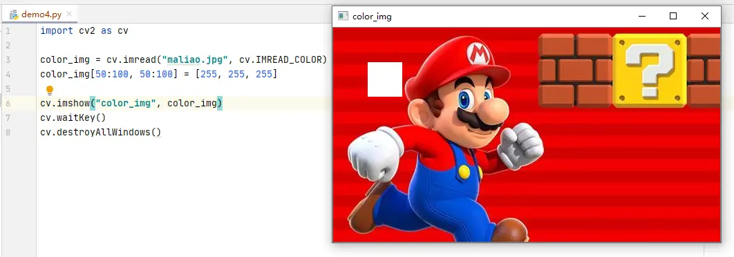 下面是对一个区域的像素进行赋值,将这个区域的像素全都赋值成为白色: