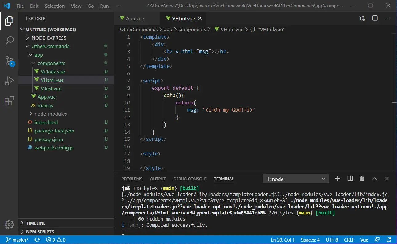 Vue - 数据绑定指令 乌龙白桃Nina酱 2020-05-18 258 阅读1分钟 下面要说的三个指令的作用本质上是将数据渲染到页面上,与插值表达式的作用相似。 v-text 渲染纯文本,相比插值表达式更加简洁,更新时没有闪烁问题。 v-html 渲染HTML片段,存在安全问题,本网站内部数据可以使用,来自第三方的数据不可用。 v-html的安全问题 v-pre 渲染原始数据,用于需要跳过编译过程显示原始数据的情况。