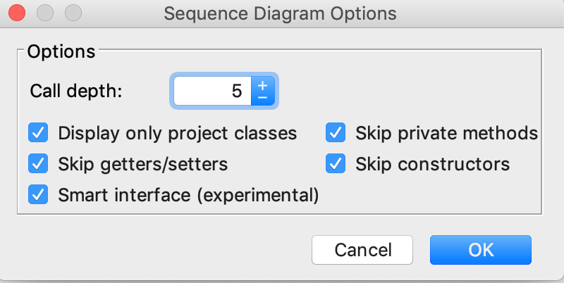 2、根据弹出框,根据自己的情况,设置调用深度,点击OK就可以生成时序图了