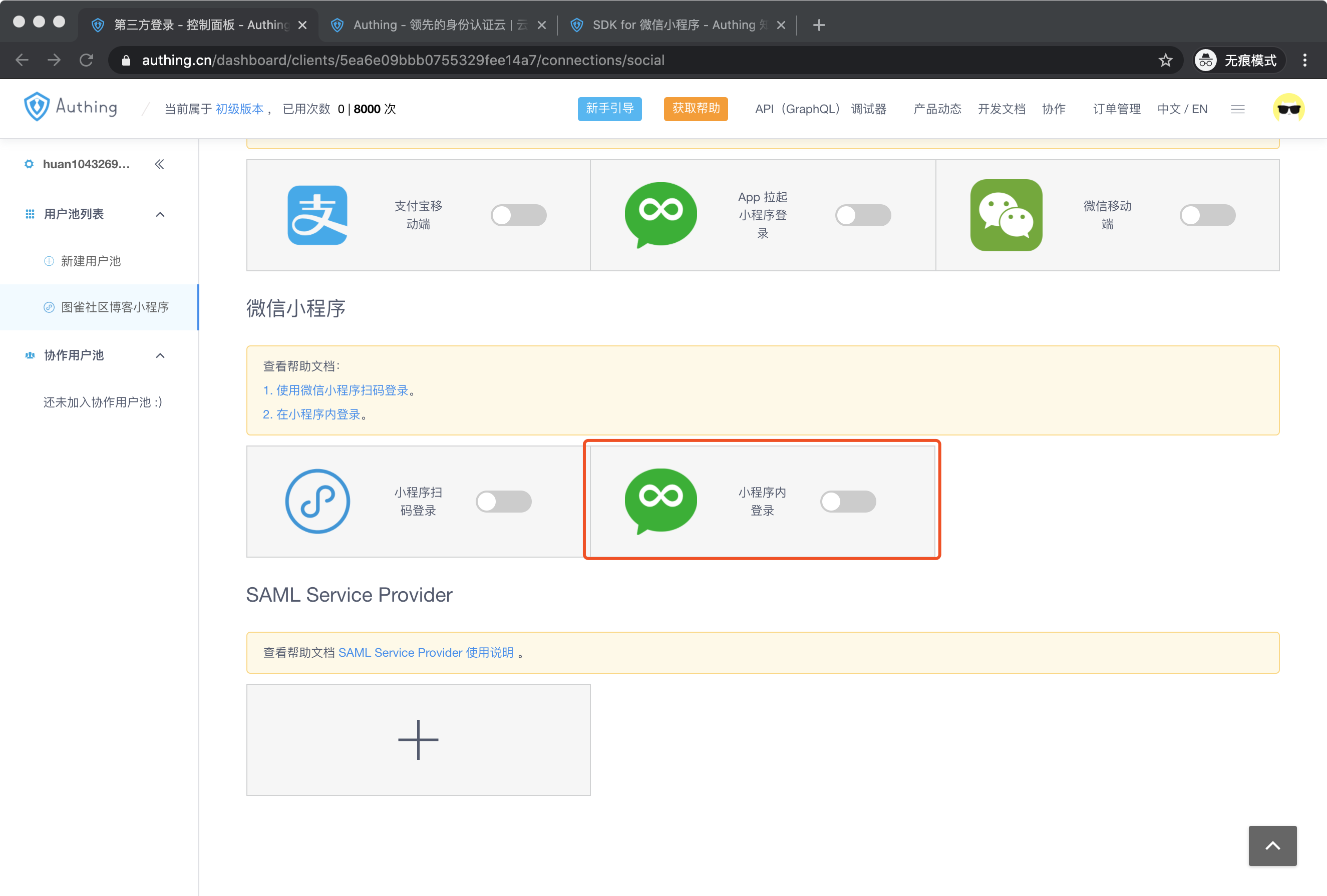 userPoolId和secret来初始化authing实例,这两个参数我们可以在用户池控制台找到: