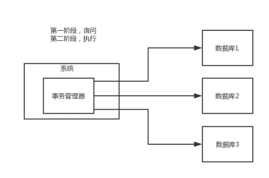 有一个事务管理器,负责协调多个数据库(资源管理器)的事务,事务管理器先问各个数据库你准备好了吗?