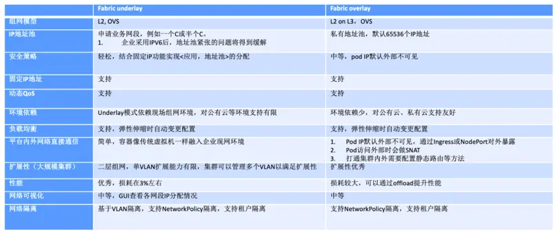 BeyondFabric同时支持underlay和overlay网络,企业可以根据需求自主选择。例如有的企业在容器云平台选型时采用了overlay网络,而对业务系统的调用关系及部署拓扑提出了很高的要求;有的企业现网IP地址空间比较少,可以选择overlay网络。overlay和underlay有各自的应用场景,不是互相替代的关系,相反很多企业在落地容器云平台时,可能同时需要两种场景。
