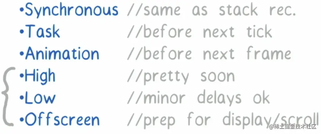 requestIdleCallback处理;- 高优先级任务,如动画相关的由
