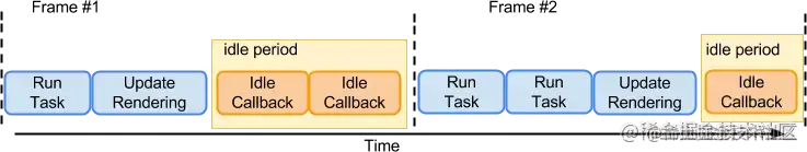 总的来讲,通常,客户端线程执行任务时会以帧的形式划分,大部分设备控制在30-60帧是不会影响用户体验;在两个执行帧之间,主线程通常会有一小段空闲时间,