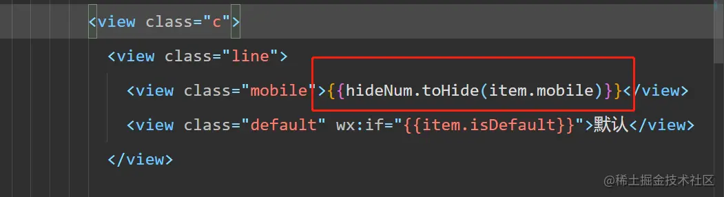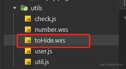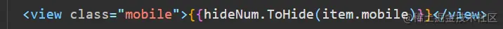 小程序中使用wxs,实现手机号码中间四位显示* 小鱼吃虾米 2020-05-19 261 阅读1分钟 一、wxs文件放在utils下面或者新建一个wxs文件 二、在wxs文件中写隐藏逻辑 三、在wxml文件中引用该wxs文件 module的名字是自己起的,src使用相对路径 四、在相应地方使用该逻辑 五、实现手机号中间四位用*表示,如图 也可以是另一种写法 然后调用wxs里的函数 效果如图所示