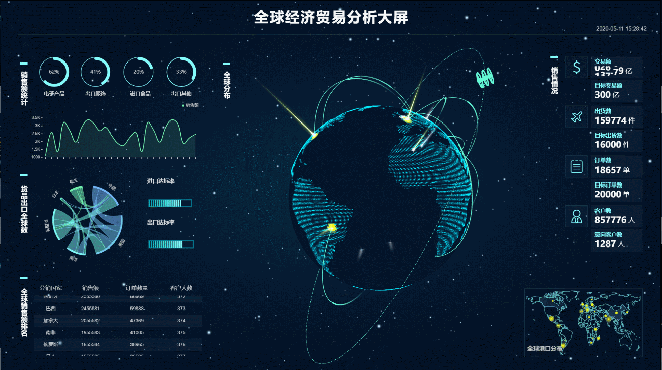 以下借几个灯果可视化的大屏为大家举几个例子:
