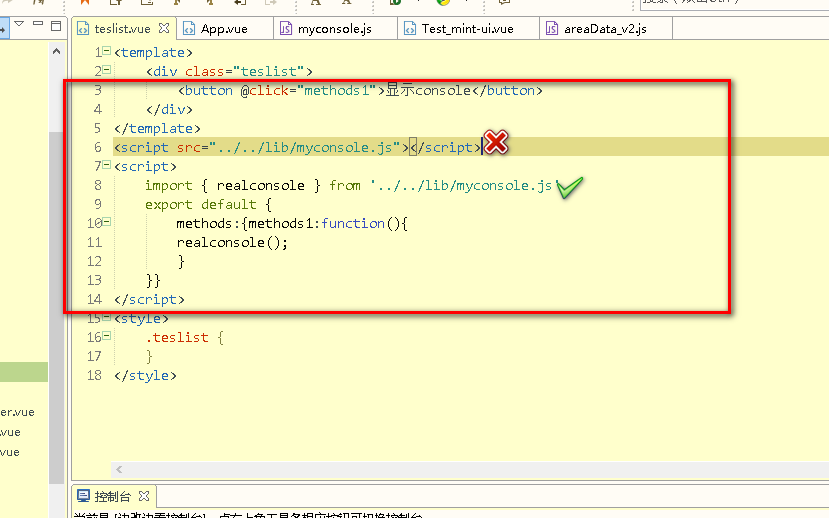 <script src="../../lib/myconsole.js"></script>import { realconsole } from'../../lib/myconsole.js'export default {