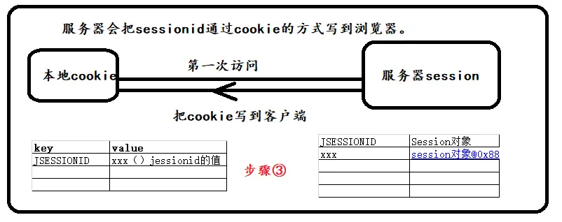 2.在响应的时候会把session的id通过cookie的方式写入到客户端的浏览器端。