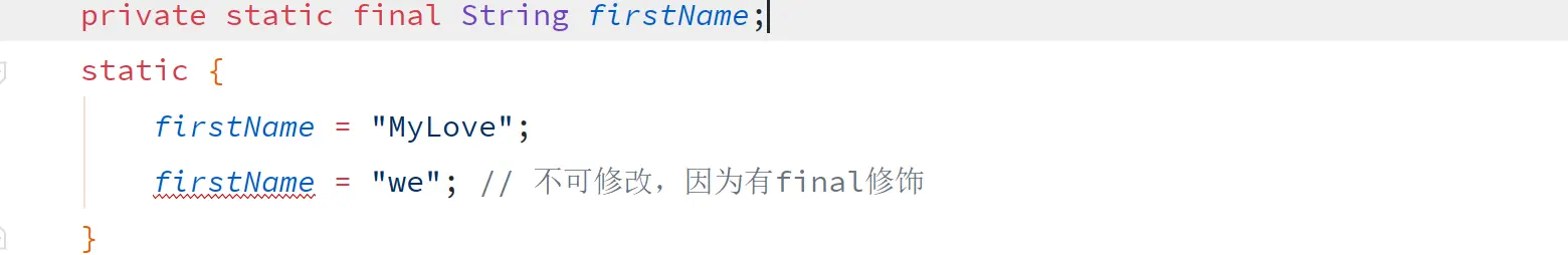 1. 直接指定 private static final String firstName = "hello java";