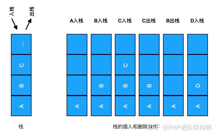 2)对栈的基本操作有push和pop,表示进栈和出栈,相当于插入和删除操作。存储数据时,先进入的数据被压入栈底,后进入的数据则在栈顶;读取数据时,从栈顶开始弹出数据。