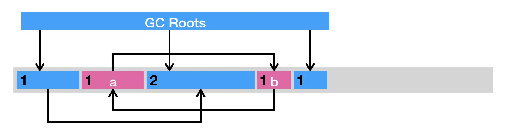 举个例子,假设对象 a 与 b 相互引用,除此之外没有其他引用指向 a 或者 b。在这种情况下,a 和 b 实际上已经死了,但由于它们的引用计数器皆不为 0,在引用计数法的心中,这两个对象还活着。因此,这些循环引用对象所占据的空间将不可回收,从而造成了内存泄露。