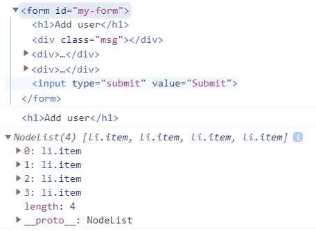 li.appendChild(document.createTextNode(`${name.value} : ${email.value}`));