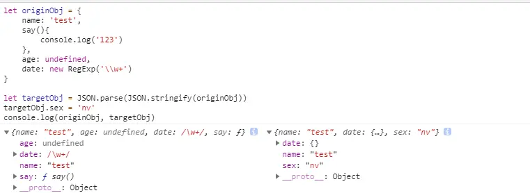 来测试一下,原对象和拷贝后的对象互不影响,这样我们就实现了一个深拷贝。