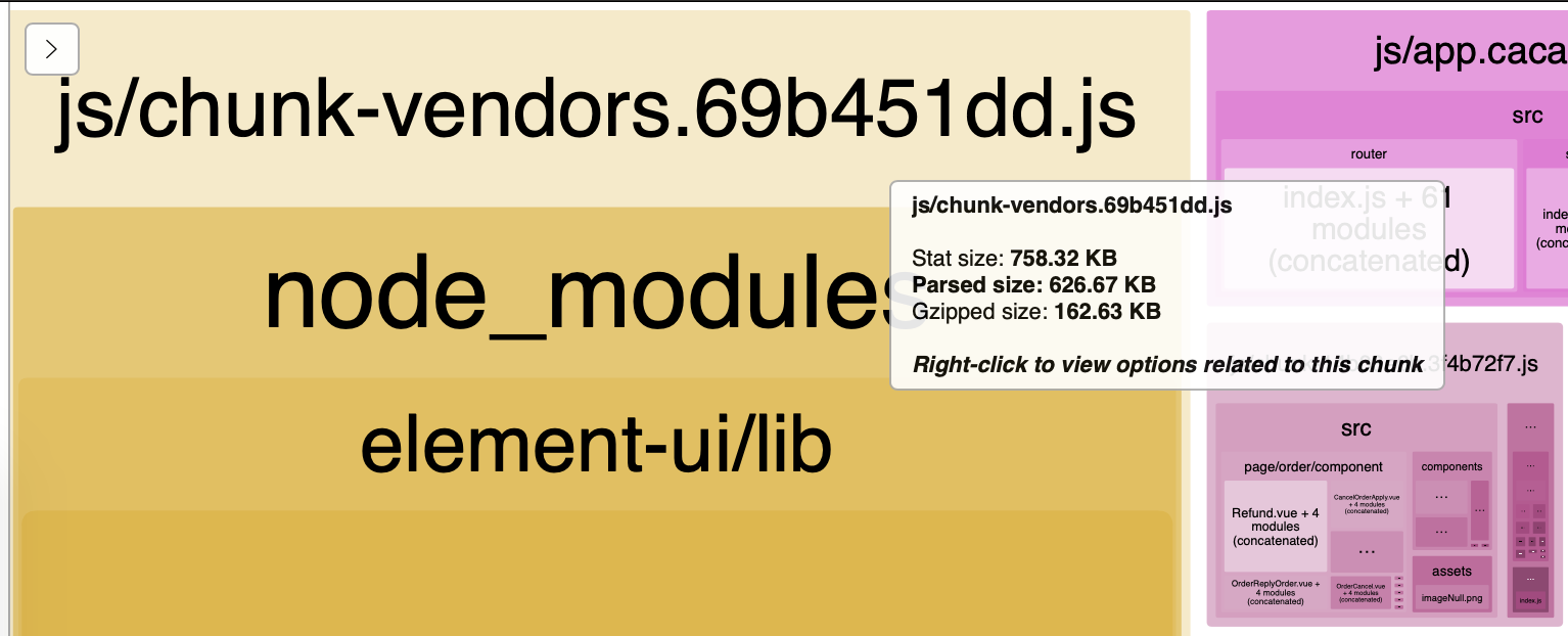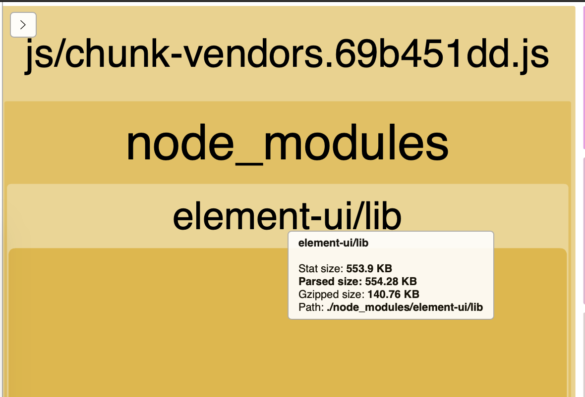看element-ui/lib 这个包就占了总包大小的三分之二,554k,总包也就700多k,所以如果把element-ui 按需加载,那就可以减少体积,按需加载这就不说了吧,都会~😝