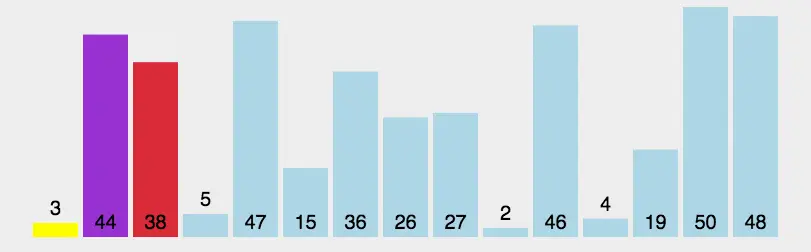 持续每次对越来越少的元素重复上面的步骤,直到没有任何一对数字需要比较。
