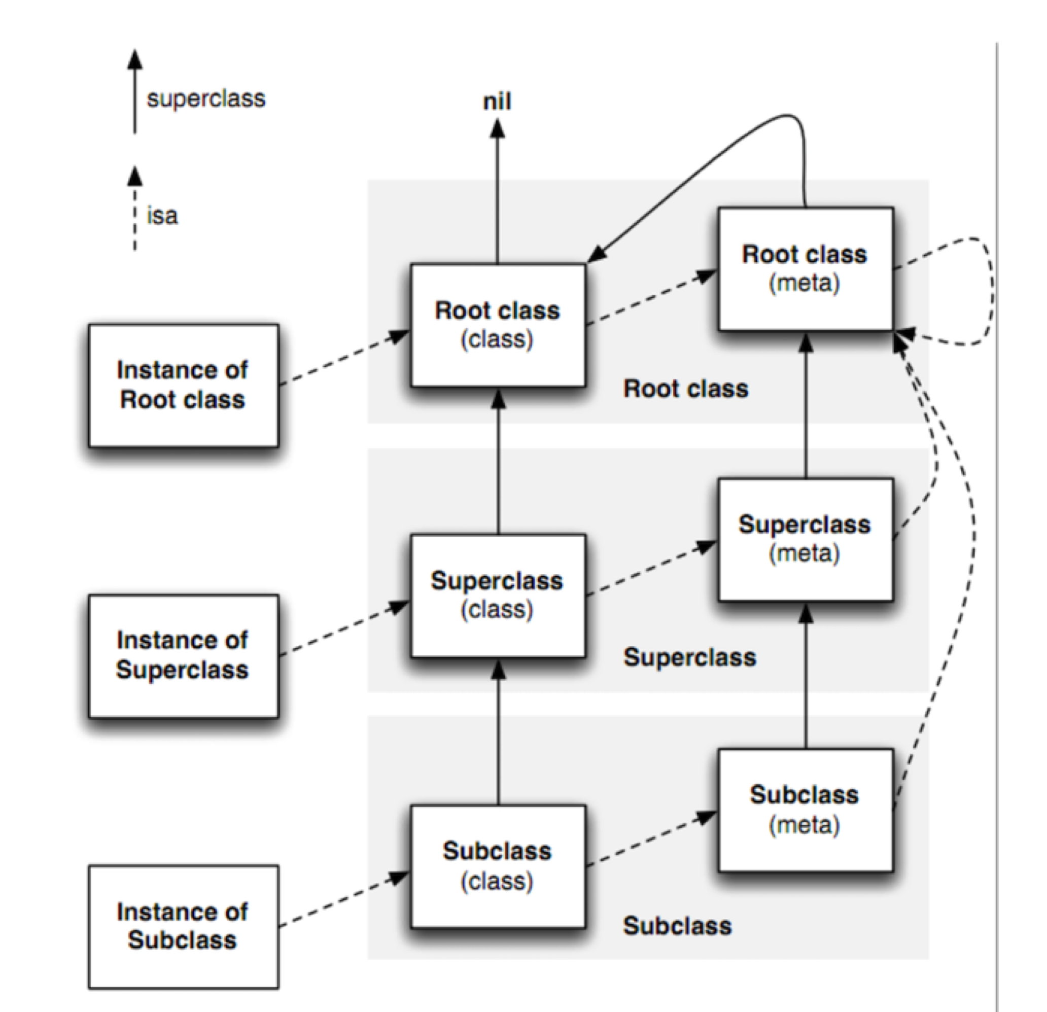 - 5.类的superClass指向其父类,如果该类为根类则值为nil。