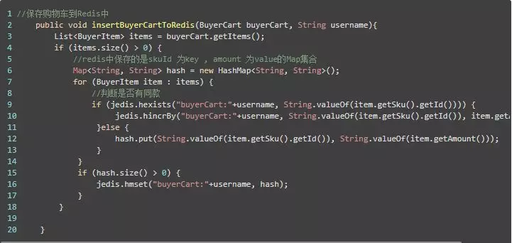 将购物车追加到Redis中的代码:insertBuyerCartToRedis(这里面包含了判断添加的是否是同款)