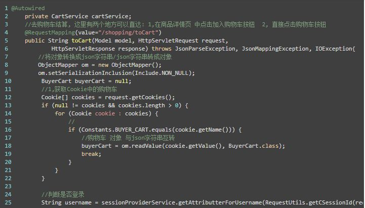 这里已经将对象购物车对象buyerCart转换成了Json格式.