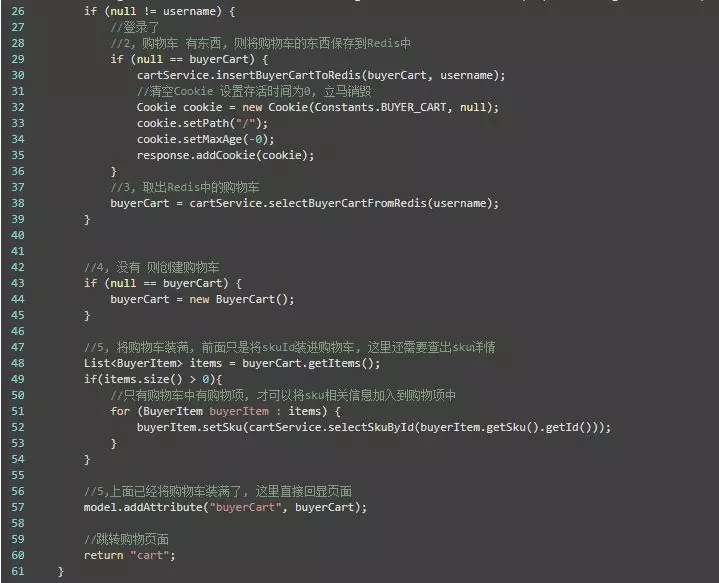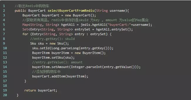 取出Redis中的购物车: buyerCart = cartService.selectBuyerCartFromRedis(username);