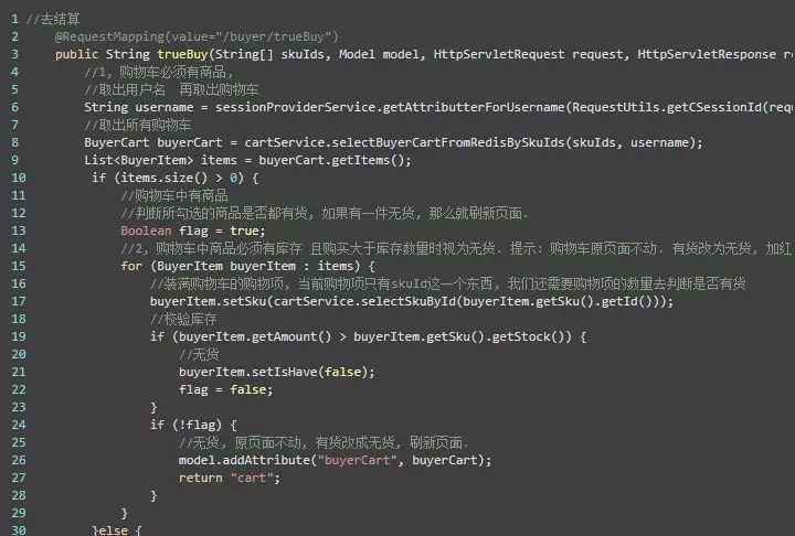 到了这里就说明用户必须要 登录, 而且购物车中必须要有商品.