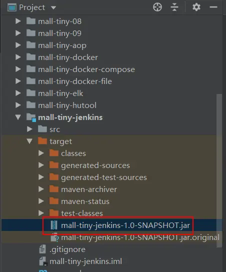target目录下就会生成一个Jar包,我们打包Docker镜像的时候会用到它。