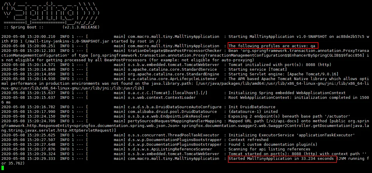group_name、app_name、app_version可以用来定义打包镜像的属性;profile_active可以让你的应用使用不同环境下的配置,比如使用qa可以启用测试环境的配置,使用prod可以启用生产环境配置,真正的一包多用;docker rmi这步一定要有,如果不删除旧镜像,当新镜像打包的时候会产生none镜像;docker run命令中的-e TZ="Asia/Shanghai"时区一定要设置,否则容器时间会和宿主机会相差8个小时。