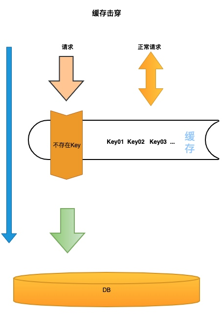 很多伙伴看到这里肯定又会觉得这是一件很正常的事情,试想一下,如果有黑客会对你的系统进行攻击,拿一个不存在的key不听的去查询数据,会产生大量的请求到数据库去查询。可能会导致你的数据库由于压力过大而宕掉。