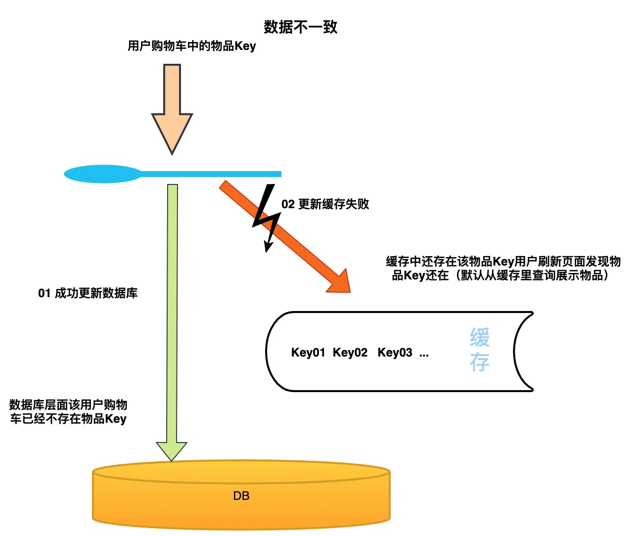 ★数据不一致概念很简单就是缓存中的数据和数据库中的数据不一致。 那为什么会不一致呢?我们的数据被缓存之后,一旦数据被修改(修改时也是删除缓存中的数据)或删除,我们就需要同时操作缓存和数据库。这时,就会存在一个数据不一致的问题。