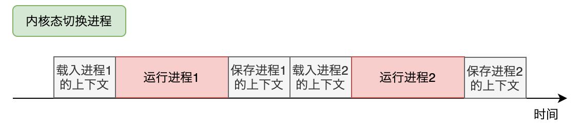 内核态保存进程上下文,加载下一个进程的上下文,准备将计算资源分配给下一个进程。