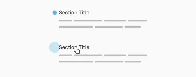 这个设计有一个 section title,在它的左边有一个小圆圈。当我们将鼠标悬停在section title上时,圆圈会变大。