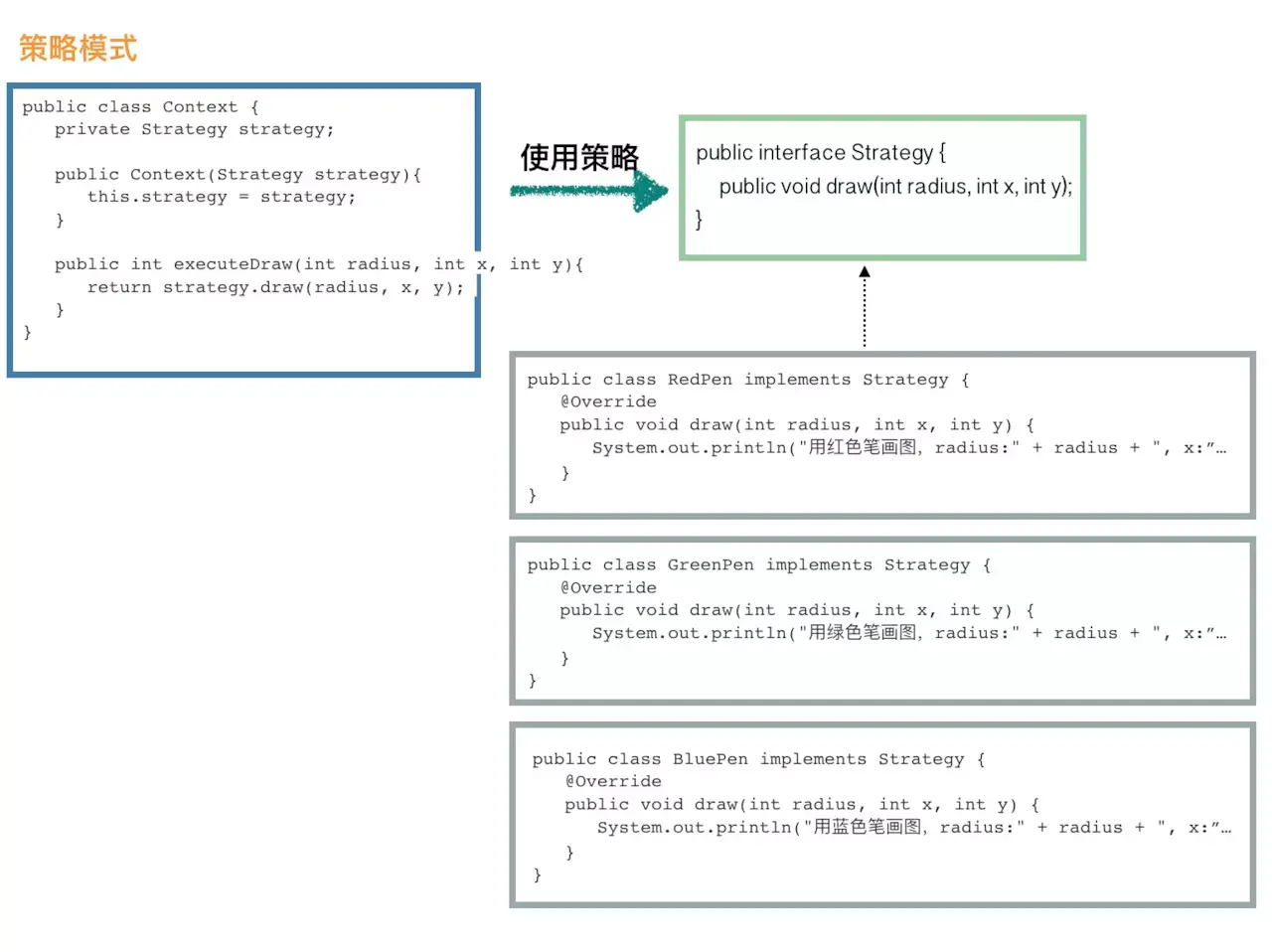 - 状态模式:不同的状态对应不同的实现类,然后基于状态进行调用。