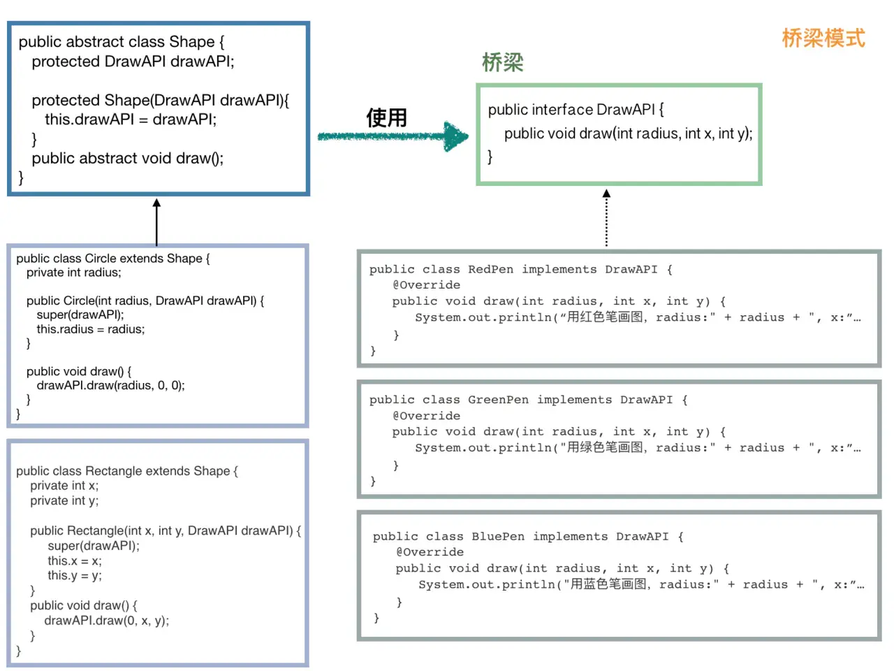 - 策略模式:与桥梁模式很相似,只是桥梁模式增加了一层抽象