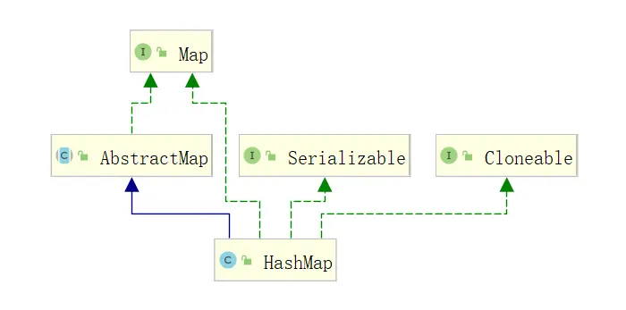 由图可得出其继承关系分别是继承自AbstractMap,实现了Cloneable、Map、Serializable接口。