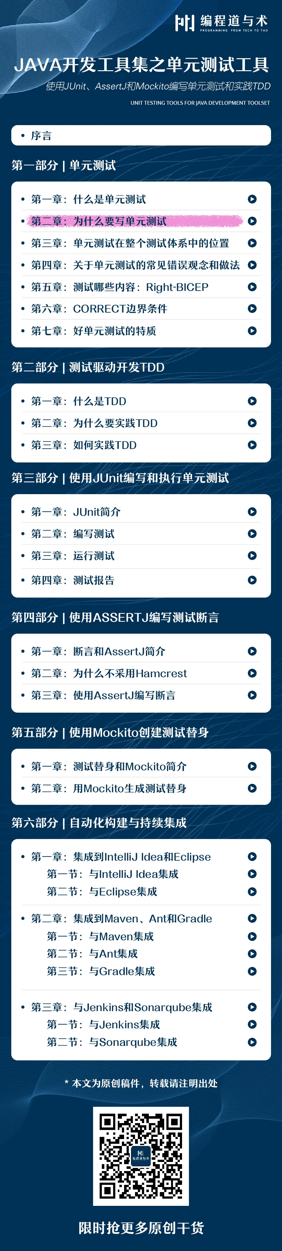 这一章就讲到这里,下一章将讲讲“为什么要写单元测试”。敬请持续关注,谢谢!